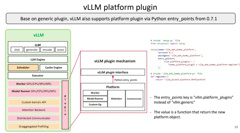 Uses vLLM’s official general_plugins entry point system, meaning it’s a supported extension mechanism.